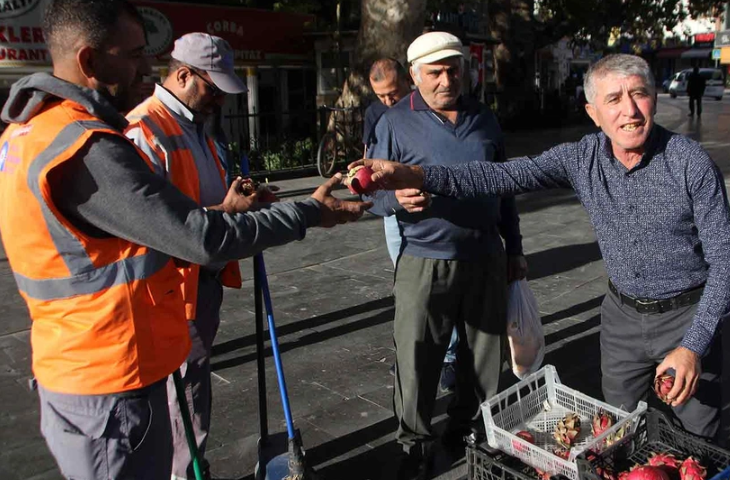Antalya Serik'te bir üretici, Donald Trump'ın yeniden ABD başkanı seçilmesini kutlamak için halka ücretsiz turp ve ejder meyvesi dağıttı.