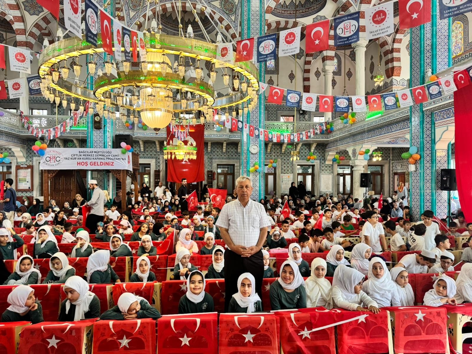 Diyanet İşleri Başkanlığı’na bağlı yaz Kur’an kursları kapsamında, İstanbul Bağcılar Çiftlik Merkez Demircan Camii’nde 1250 öğrencinin katılımıyla gerçekleştirilen kapanış programı; Kur’an tilaveti, ilahi ve tiyatro gösterileri, çeşitli sportif ve kültürel etkinliklerle coşkulu ve unutulmaz bir şekilde tamamlandı.