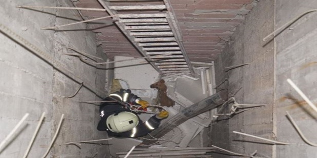 İstanbul Sancaktepe'de 10 metre yükseklikten inşaat halindeki bir binanın asansör boşluğuna düşen 40 yaşındaki adam 1 buçuk metre suyun altında saatlerce kurtarılmayı bekledi.