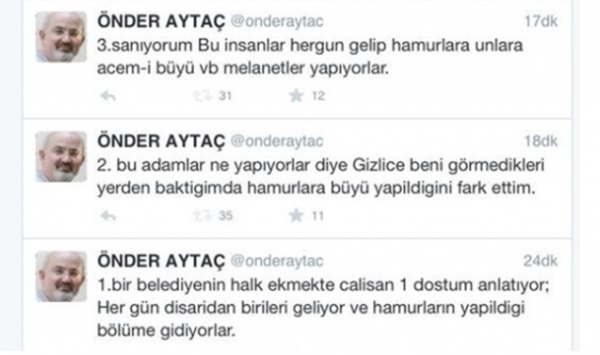 Paralel çete, Halk Ekmek'i karalamak için daha önce de komik duruma düşmüştü. Paralel Yapı'nın Emniyet'teki akıl hocalarından Önder Aytaç, 'bir belediyenin halk ekmek firmasında çalışan arkadaşının, kendisine buralarda yapılan ekmeklere büyü yapıldığını söylediğini' iddia etmişti.