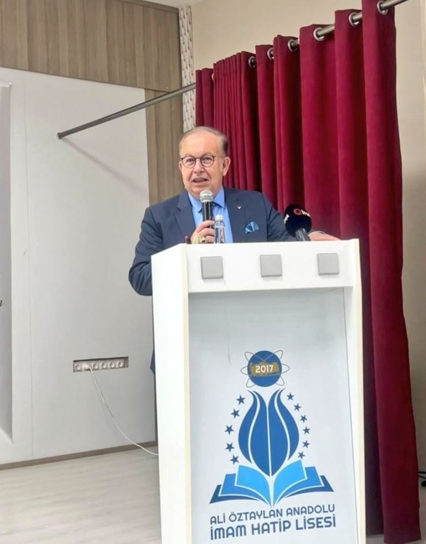 Balıkesir Bandırma'da Ali Öztaylan Anadolu İmam Hatip Lisesi salonunda düzenlenen konferansta, Müstafi Tuğamiral, Türk Denizcilik ve Global Stratejiler Merkezi Başkanı, Topkapı Üniversitesi Öğretim Üyesi Doç. Dr. Cihat Yaycı, öğrencilere denizciliğin önemini, 'Mavi Vatan' kavramıyla açıkladı.