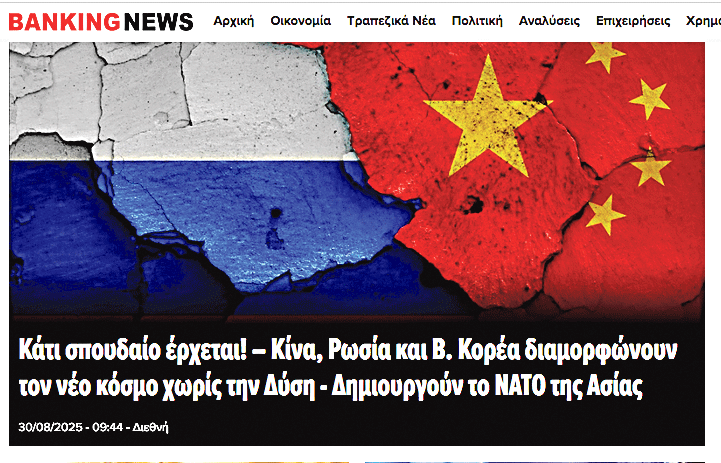 bankingnews.gr sitesinin manşetten verdiği analiz haberde yakında bir Doğu NATO’su kurulacağı iddia edildi.