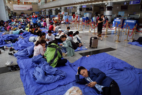 Reuters ve AP'nin geçtiği fotoğraflarda, çok sayıda turistin Jiuzhaigou havalimanında beklediği görülüyor.