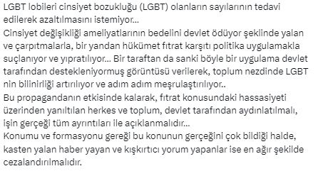 Cinsiyet değişikliği ameliyatlarının bedelini devlet ödüyor şeklinde yalan ve çarpıtmalarla, bir yandan hükümet fıtrat karşıtı politika uygulamakla suçlanıyor ve yıpratılıyor… Bir taraftan da sanki böyle bir uygulama devlet tarafından destekleniyormuş görüntüsü verilerek, toplum nezdinde LGBT nin bilinirliği artırılıyor ve adım adım meşrulaştırılıyor..