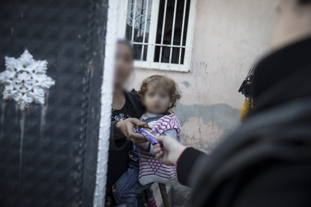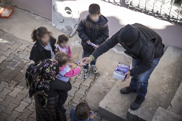 Kapıları tek tek çalan polisler ev halkına sıkıntılarının olup olmadığını, ihtiyaçlarını sordu. Sokağa çıkmamaları konusunda uyarılarda bulunan güvenlik güçleri gıda paketlerini ailelere teslim etti. Bazı yerlerde yaptığı anonslarla vatandaşları gıda dağıtım aracının yanına davet eden güvenlik güçleri çocuklara da çikolata hediye etti.