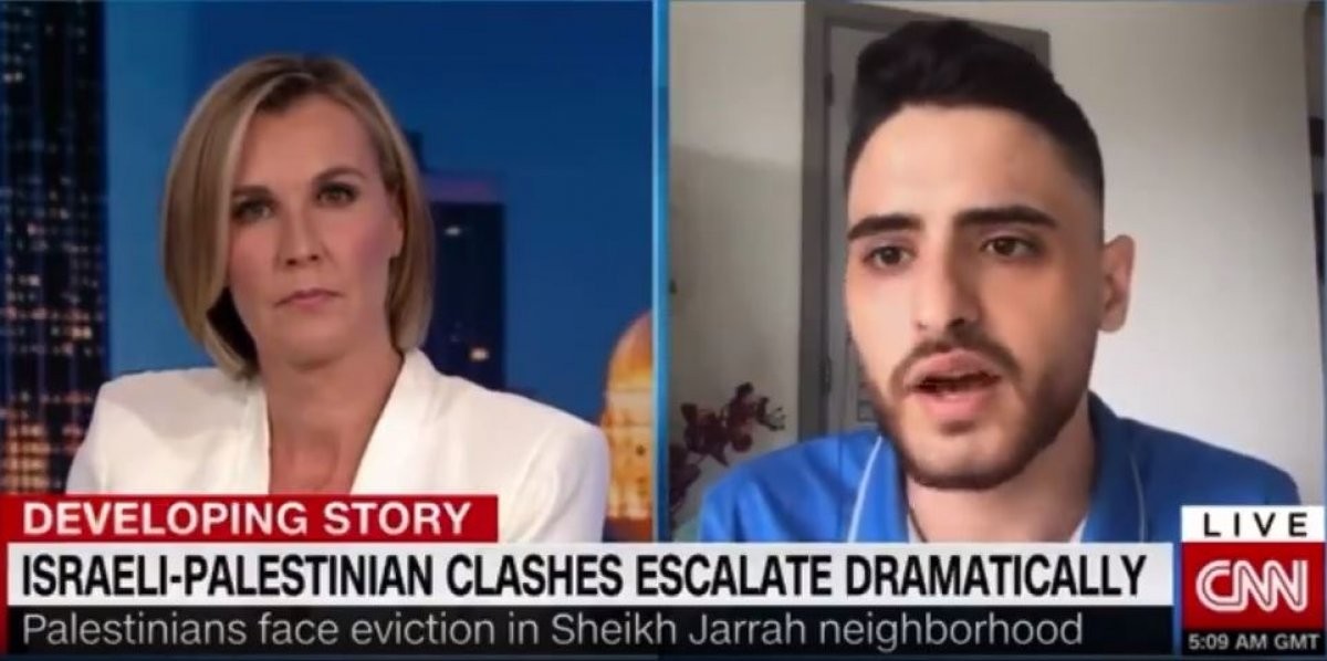 Söz konusu mahallede İsrail zorbalığına karşı direnen Filistinlileri şiddetin kaynağı gibi göstermeye çalışan CNN spikeri ile El-Kurd arasındaki diyalog, sosyal medyanın gündemine oturdu.
