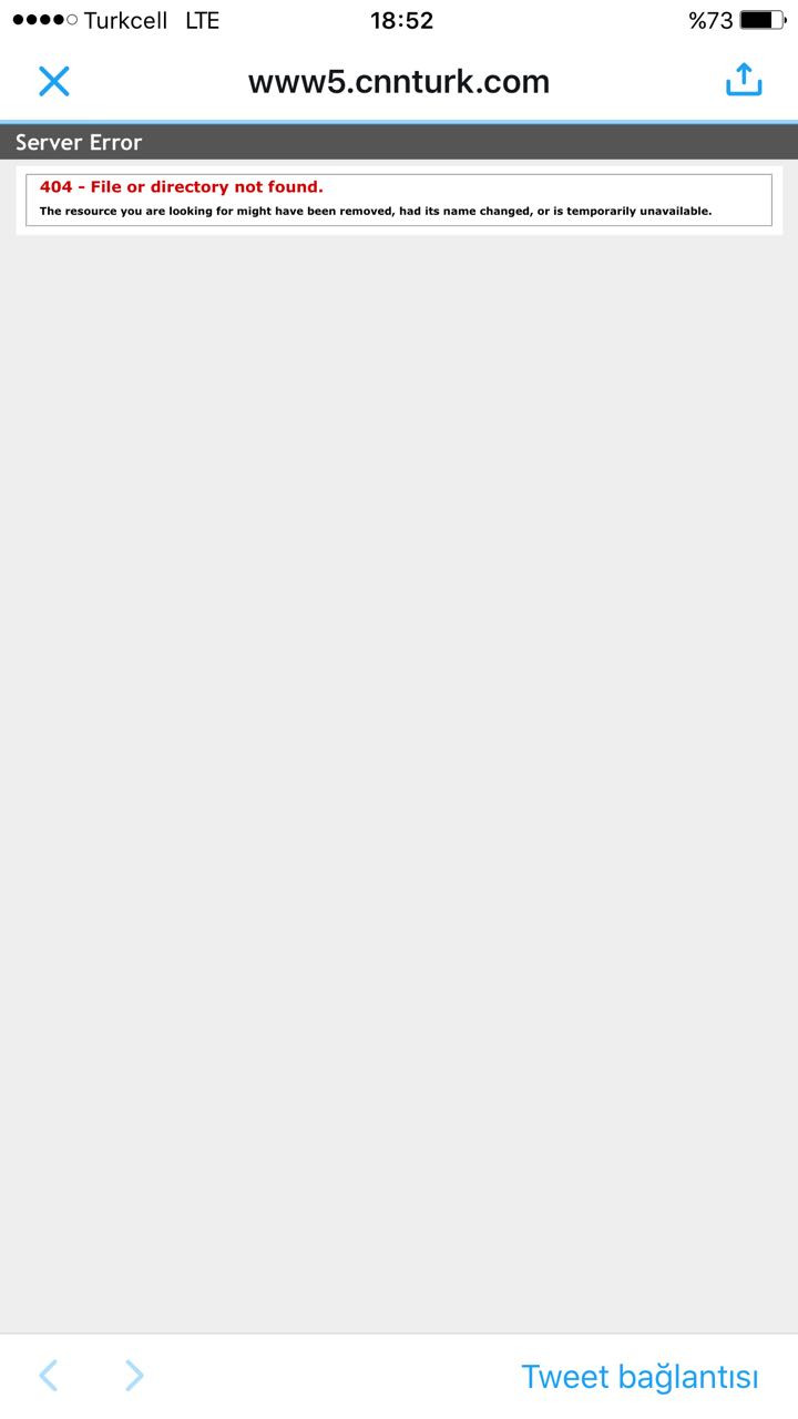 CNN Türk sitesinde haberin silindiğine dair ekran görüntüsü