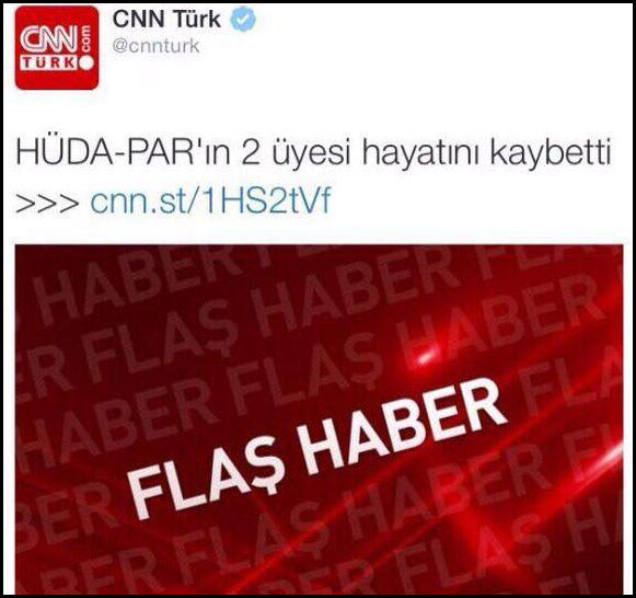 CNN Türk yine bir skandala imza attı. İnternet sitesinin manşetinde HDP'nin saldırısından bahsetmezken 'HüdaParlı iki üyesi hayatını kaybetti' demekle yetindi.