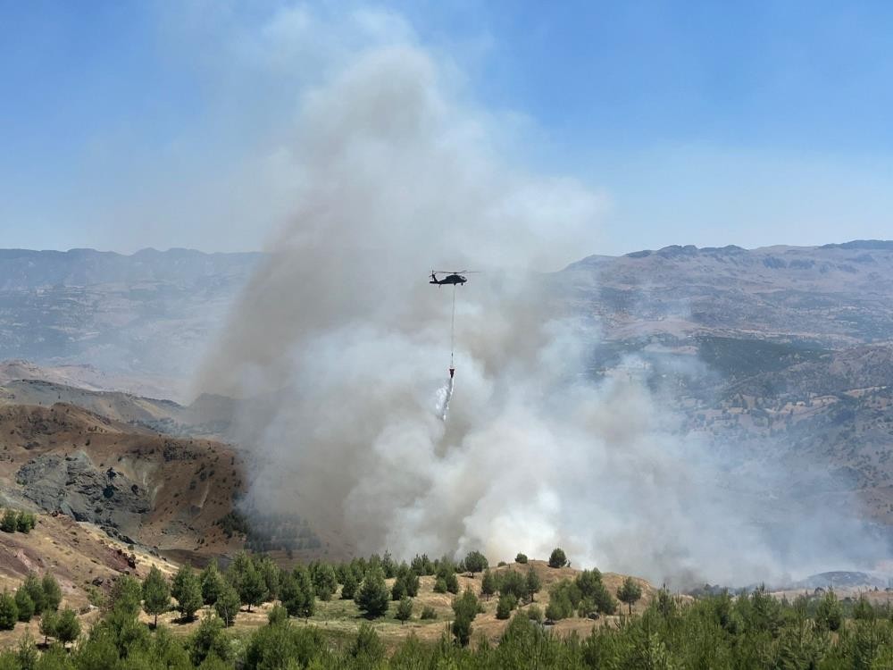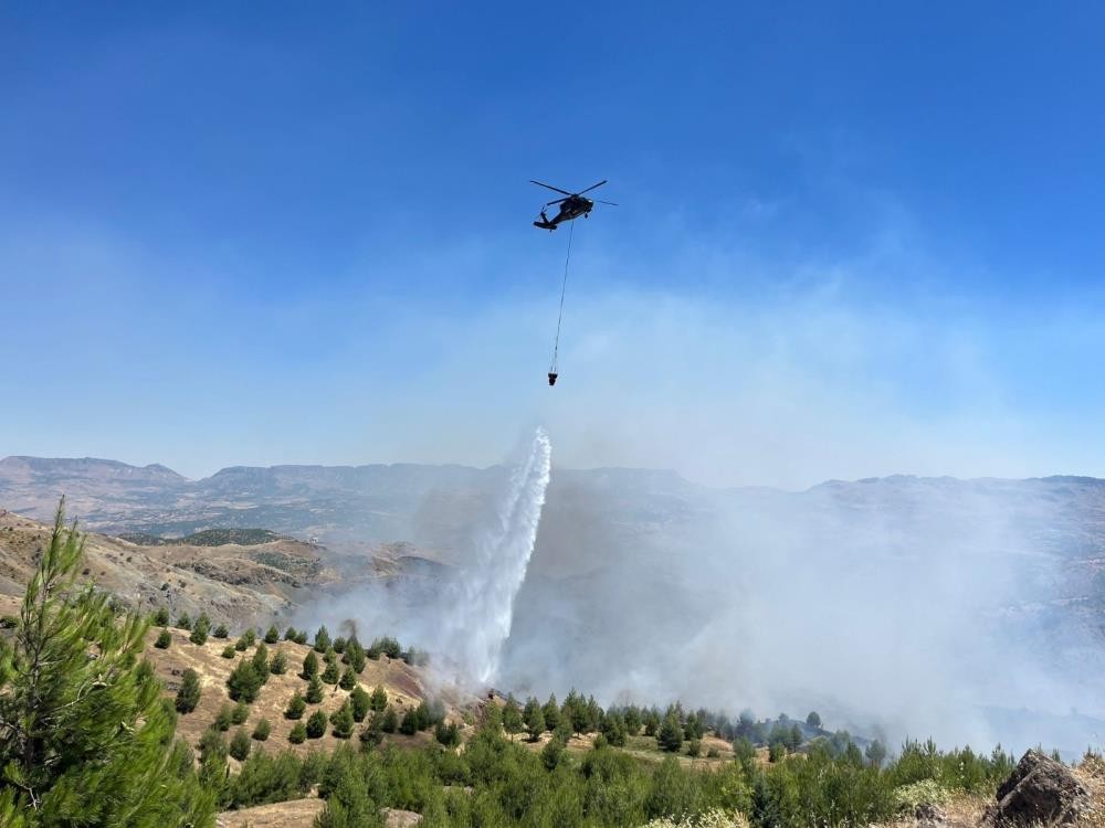 Adıyaman’ın Gerger ilçesinde çobanın çay ateşinden çıktığı belirtilen ve ormanlık alanda halen devam eden yangına havadan 2 helikopter ile müdahale ediliyor.