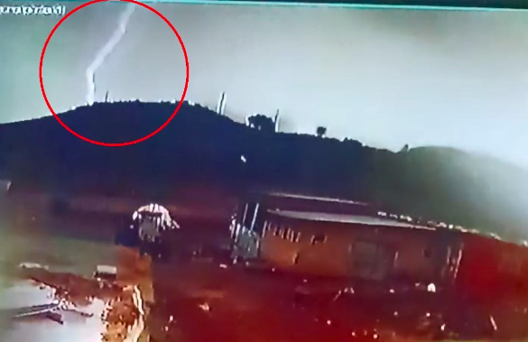 Diyarbakır’ın Çermik ilçesinde isabet ederek çoban Miktat Altunbaş’ın (48) ölümüne neden olan yıldırımın düştüğü an, güvenlik kamerasına yansıdı.