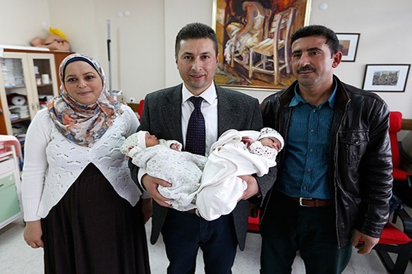 Halep'te 13 yıllık evlilikleri boyunca 4 kez denedikleri tüp bebek yönteminden sonuç alamayan Suriyeli Fadıl-Lamia Çavuş çifti, İzmir'de biri kız, biri erkek ikiz bebek sahibi oldu.