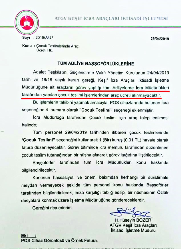 Boşanan çiftlerden çocuğun velayetini alamayan tarafın yavrusuyla haftada bir görüşme hakkını, çocuğunu “haczederek” gerçekleştirdiği Çocuk Haczi Uygulamasındaki sıkıntılar devam ediyor. Gazetemiz Akit’in 18 Nisan 2019’da “Çocuk haczinde yeni rant kapısı” manşetiyle kamuoyu gündemine taşıdığı mağduriyet, Adalet Teşkilatını Güçlendirme Vakfı’nın (ATGV) 29 Nisan tarihli tebligatıyla çözüme kavuşturulmuştu. Adliyelerde İcra Müdürlükleri tarafından gerçekleştirilen çocuk haczi işlemlerinden araç ücreti alınmayacağını ilan eden tebligata rağmen bazı çocuk teslimlerinde ATGV aracı yerine ticari taksi kullanılıyor ve bunun ücreti yüksek bedellerle babalardan tahsil ediliyor.