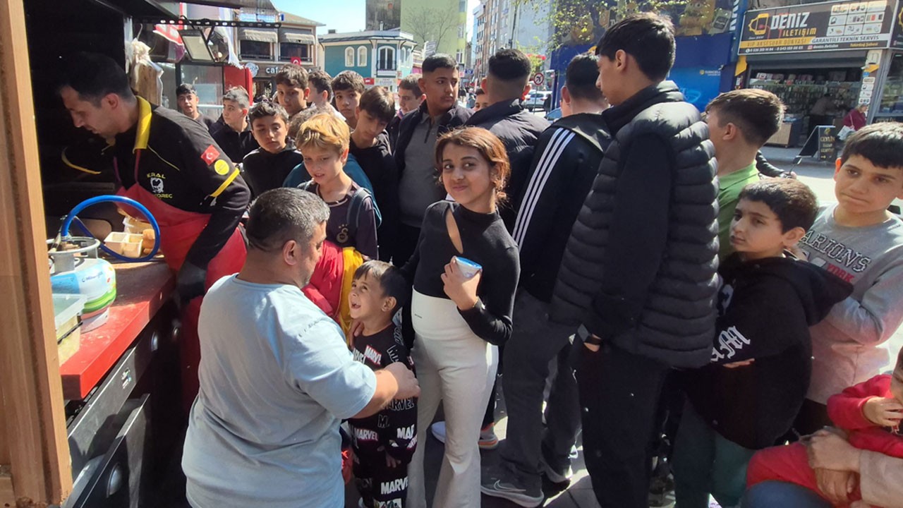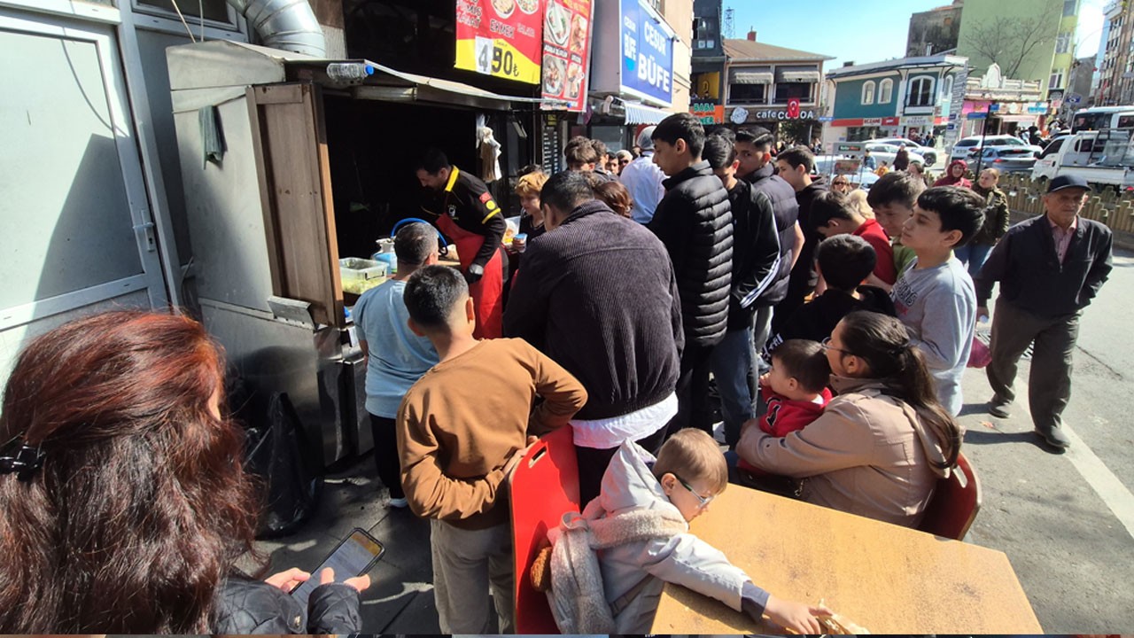 Tekirdağ'ın Süleymanpaşa ilçesinde 23 Nisan Ulusal Egemenlik ve Çocuk Bayramı'nda çocuklara ücretsiz kokoreç dağıtılması üzerine işletme önünde izdiham oluştu.