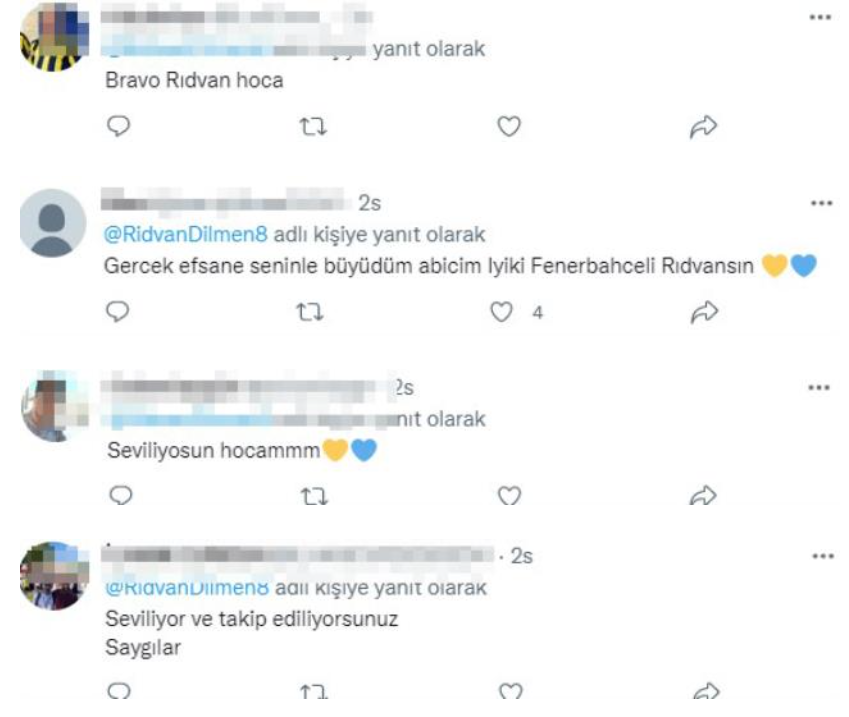 Rıdvan Dilmen'in paylaştığı fotoğrafa Fenerbahçeli taraftarlardan beğeni ve yorum yağdı. Fotoğrafa yapılan yorumlarda "Gerçek efsane" ifadeleri kullanıldı.
