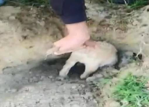 Toprağı hızlı bir şekilde kazan çocuklar, yavru köpekleri elleri ile çıkartarak annelerinin yanına koydu. Çocuklardan biri, saniyelerle yarıştıkları o anları cep telefonu kamerası ile kaydetti. Yavru köpekleri yuvalarındayken diri diri toprağın altında bırakan şahısın ise kimliği bilinmiyor.
