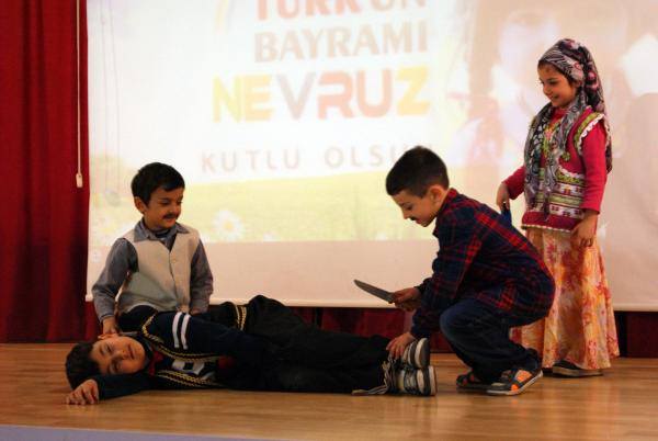 Kayseri’de bir ilkokulda gerçekleştirilen nevruz etkinliklerinde, ilkokul çocukların kurban kesme oyunu tepki çekti.