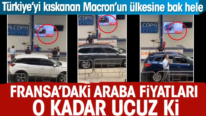 Fransa'da kaydedilen ve sosyal medyada paylaşılan bir video Türkiye'de araba almak isteyenlerin moralini bozacak cinsten. Türkiye'de 722 bin liraya satılan bir yaşındaki otomobil Fransa'daki bir açık artırmada aynı yaşta aynı model araç 11 bin 300 euro yani 206 bin 900 liraya alıcı buldu.