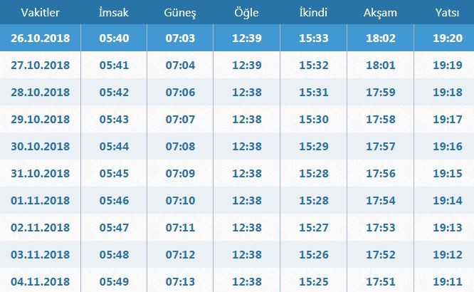 İZMİR NAMAZ SAATLERİ