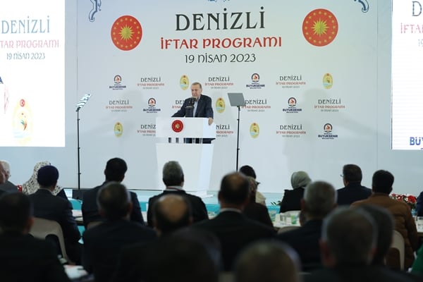 "Rabbim bizlere, Türkiye'yi CHP zihniyetinin boyunduruğundan kurtarmayı, vesayetçilerin milli iradeye vurdukları zincirleri tek tek kırmayı nasip etti. Rabbim bizlere, 86 yıllık hasretin ardından Ayasofya'yı yeniden asli kimliğine kavuşturmayı, Ezanı Muhammedilerle buluşturmayı nasip etti. Rabbim bizlere, Büyük Çamlıca Camii gibi, Taksim Camii gibi, Beştepe Millet Camii gibi nice sembol ibadethaneyle ülkemizi nakış nakış süslemeyi nasip etti. Şimdi de Barbaros Hayrettin Paşa Camiini Levent'te elhamdülillah inşa ettik ve bayramdan sonra da orayı açacağız. Barbaros Hayrettin oradan Boğaz'a leventleriyle kadırgalarını sürdü. Biz de şimdi Barbaros Hayrettinlerin izinden yolumuza devam ediyoruz. Rabbim bizlere, ülkemizdekilerle beraber tüm mağdur ve mazlumların elinden tutmayı nasip etti. Rabbim bizlere, Türkiye'nin iyilik sancağını, şefkat ve merhamet bayrağını dünyanın dört köşesine ulaştırmayı nasip etti. Rabbim bizlere, on yıllardır kendi öz yurdunda horlanan, hor görülen, değerleri aşağılanan bu necip millete öz güven kazandırmayı nasip etti. Rabbim bizlere, ülkemizin kronik sorunlarını çözmeyi, vatandaşımızın sıkıntılarına çözüm bulmayı nasip etti. Rabbim bizlere, son 21 yılda sadece Denizli'ye hemen her alanda 66,3 milyar lira yatırım yapmayı nasip etti."