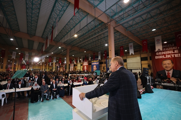 Erdoğan, "Bugün de sizlerin derdiyle dertleniyor, hangi meseleniz varsa çare arıyor, sizlerin hayır duasını almayı en büyük şeref payesi olarak görüyoruz. Sizlere hizmet yolculuğumuzu çok daha kararlı bir şekilde 14 Mayıs'tan sonra da sürdürme niyetindeyiz." diye konuştu.