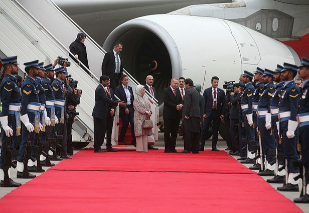 Çeşitli temaslarda bulunmak üzere Pakistan'ın başkenti İslamabad'a gelen Cumhurbaşkanı Recep Tayyip Erdoğan, Başbakanlık konutunda resmi törenle karşılandı. Cumhurbaşkanı Erdoğan'a Pakistan ziyaretinde eşi Emine Erdoğan, Dışişleri Bakanı Mevlüt Çavuşoğlu, Enerji ve Tabii Kaynaklar Bakanı Fatih Dönmez, Hazine ve Maliye Bakanı Berat Albayrak, Ticaret Bakanı Ruhsar Pekcan, Ulaştırma ve Altyapı Bakanı Mehmet Cahit Turhan eşlik ediyor.