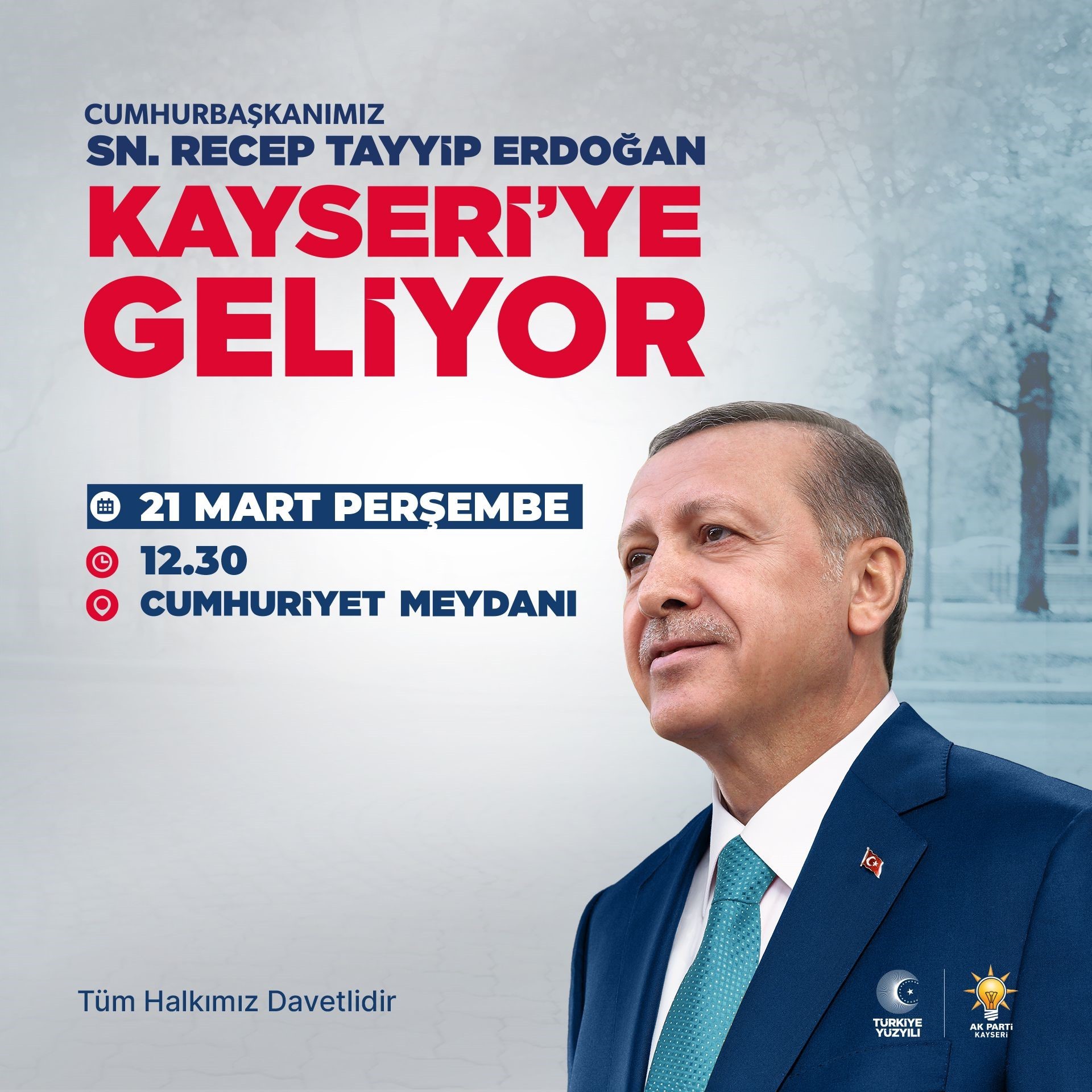 Cumhurbaşkanı Erdoğan 21 Mart Perşembe günü 12.30’da Cumhuriyet Meydanı’nda vatandaşlarla buluşacak.