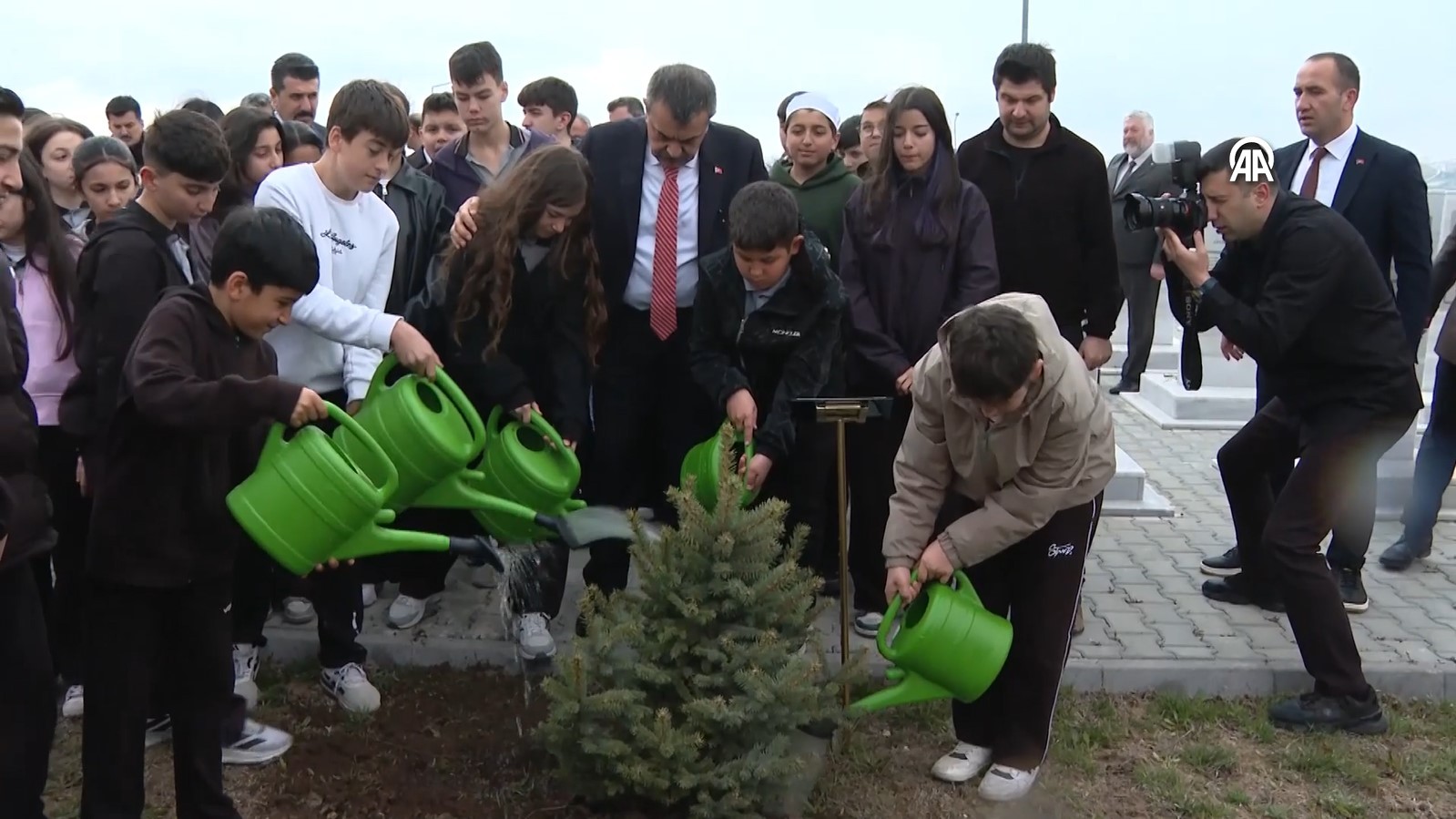 Kur'an-ı Kerim tilavetinin ardından Tekin, öğretmen ve öğrencilerle birlikte Çelik ve Kara için fidan dikti.