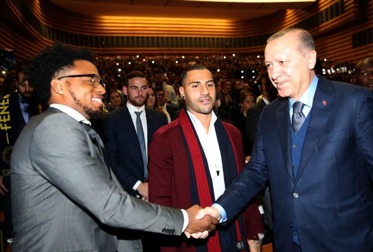 Çeşitli ülkelerden gelerek Türkiye'ye yerleşen spor, iş ve turizm dünyasından isimler Cumhurbaşkanı Recep Tayyip Erdoğan'ın da katıldığı "Anadolu Dünya Dolu" programında bir araya geldi. Spor dünyasından Eto'o, Quaresma, Muslera, Janssen, Bafetimbi Gomis, Moussa Sow, Bobby Dixon ve Ramil Guliyev gibi isimlerin yer aldığı organizasyonda önemli mesajlar veren Erdoğan, "Ülkemize gelen herkese gönlümüzü açıyoruz. Bizim göçmenler konusunda başımız ne kadar dikse, modern olarak tanımlanan ülkelerin başı o kadar eğiktir" dedi.