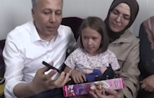 Gaziantep'te konteynerde kalan depremzedelerle bayramlaşan İçişleri Bakanı Ali Yerlikaya, Aydın ailesini telefonla aradığı Cumhurbaşkanı Recep Tayyip Erdoğan ile görüştürdü. Erdoğan, Yerlikaya'dan depremzede çiftin 9 yaşındaki kızı Özlem'e bayram harçlığı vermesini istedi.