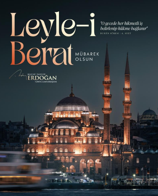 Cumhurbaşkanı Erdoğan, sosyal medya hesabından yaptığı paylaşımda, "Aziz milletimizin ve İslam âleminin Leyle-i Berat’ını tebrik ediyor, Rabb’imden bizleri huzur ve afiyet içerisinde on bir ayın sultanı Ramazan-ı Şerif’e eriştirmesini niyaz ediyorum. Gecemiz mübarek olsun" ifadelerine yer verdi.