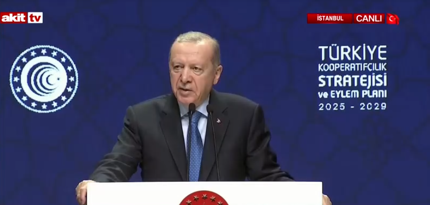 Cumhurbaşkanı Recep Tayyip Erdoğan, Haliç Kongre Merkezi'nde düzenlenen 2025- 2029 Türkiye Kooperatifçilik Stratejisi ve Eylem Planı Tanıtım Töreni'nde konuştu.