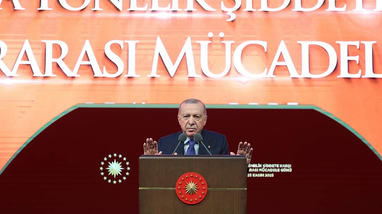 Cumhurbaşkanı Recep Tayyip Erdoğan, Kadına Yönelik Şiddetle Mücadele Günü programında yaptığı konuşmada, şiddete karşı sıfır tolerans vurgusu yaptı. “Kadına el kaldıranın vicdanı kararmıştır. Tek bir hanım kardeşimizin bile canı yansa bu bizim için küçük kıyamettir” diyen Erdoğan, hem Türkiye’de hem dünyada kadınlara yönelik zulme karşı durmaya devam edeceklerini belirtti. Gazze’de kadınlar ve çocuklara yapılan saldırılara dikkat çeken Erdoğan, “Zalimin de mazlumun da kimliğine bakmadan hakkı savunacağız” ifadelerini kullandı. Ailenin temel taşı olarak gördüğü kadınlara daha fazla destek çağrısı yapan Erdoğan, babaların da çocuk yetiştirmede sorumluluğu paylaşması gerektiğini söyledi.