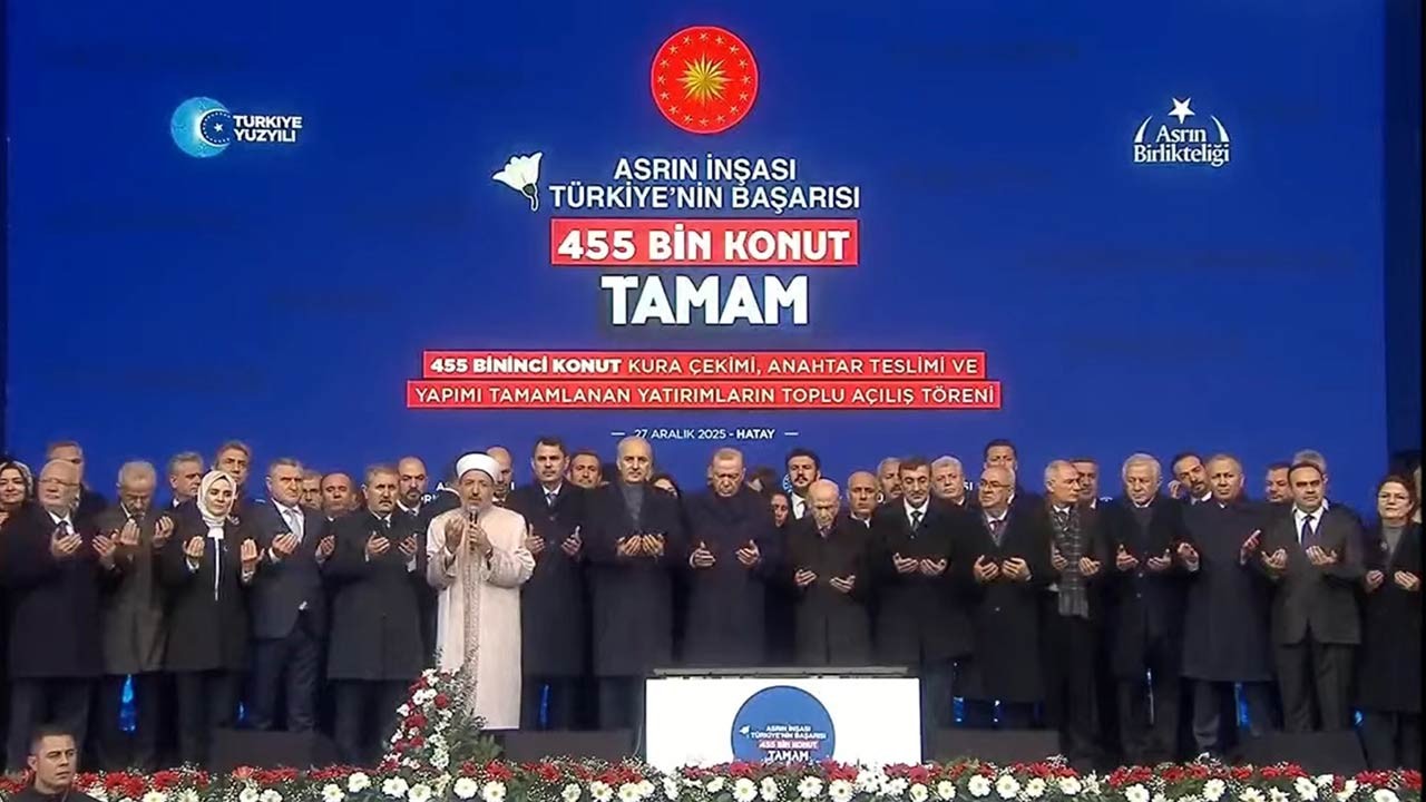 Cumhurbaşkanı Recep Tayyip Erdoğan, Hatay'da 455 bininci konutun teslim töreninde açıklamalarda bulundu.
