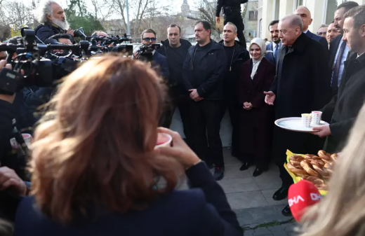 Cumhurbaşkanı Recep Tayyip Erdoğan, Beyoğlu'nda yaptığı bir ziyaretin ardından kendisini bekleyen basın mensuplarının 10 Ocak Çalışan Gazeteciler Günü'nü kutladı.
