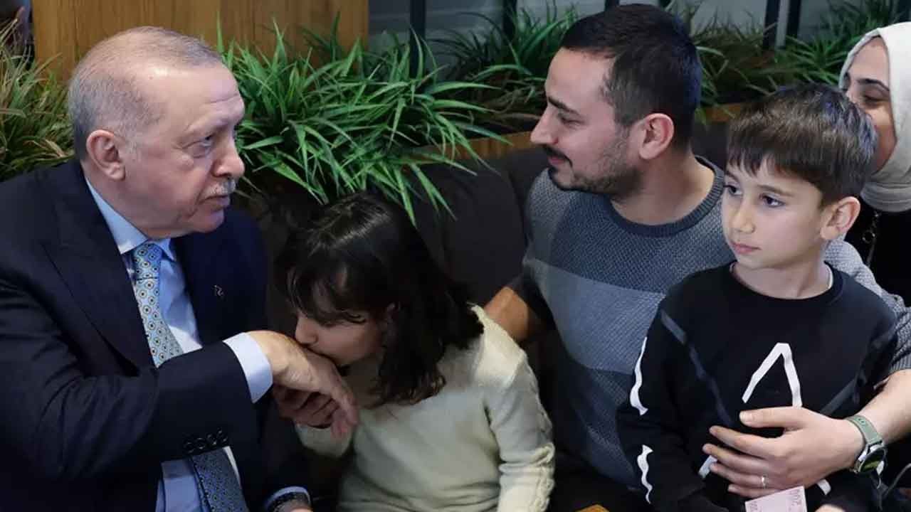 Erdoğan, burada tokalaştığı vatandaşlarla sohbet etti, elini öpen çocuklara harçlık dağıttı.