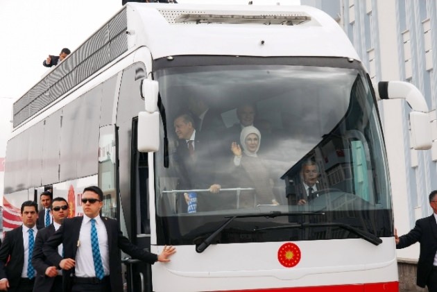 Cumhurbaşkanı Recep Tayyip Erdoğan otobüsü durdurarak, 9 yıl önce kendisini öperken çekilmiş fotoğrafını gösteren küçük kızla sohbet etti.