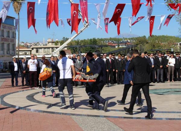 Törende çelen konulması sırasında Atatürk Anıtı önünde bayrak taşıyan, özel bir okulda 8'inci sınıf öğrencisi olduğu belirtilen Kaan Kaya, baygınlık geçirerek yere düştü. Öğrenciye ilk müdahale, tören alanında bulunan İlçe Sağlık Müdürü Dr. Aşur Eker ile 112 ekibi tarafından yapıldı. Kaymakam Mustafa Yiğit de öğrencinin yanına gelerek durumunu kontrol etti ve bilgi aldı. Düşmenin etkisiyle yüzünden yaralanan Kaan Kaya, yapılan müdahalenin ardından Manavgat Devlet Hastanesi'ne sevk edildi. Öğrencinin yüzüne 4 dikiş atılırken, sağlık durumunun iyi olduğu bildirildi.