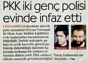 Can Dündar’ın Genel Yönetmenliğini yaptığı Cumhuriyet Gazetesi, dün Şanlıurfa'da PKK tarafından şehit edilen iki polis için "infaz edildiler" ifadesini kullandı.
