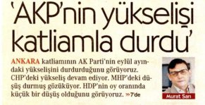 Gazetenin manşetinde "AKP'nin yükselişi katliamla durdu" başlıklı habere yer verildi