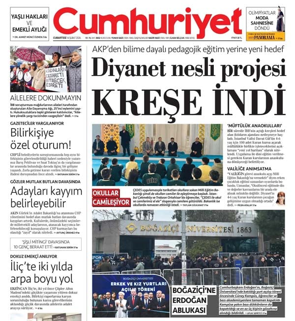 Öte yandan geçtiğimiz yıllarda çikolata kutularında gelen rüşvet paralarıyla sipariş haberler yazdığı gerekçesiyle yöneticileri davalık olan ve Ekrem yönetiminde İBB’den bir süre beslenen Cumhuriyet, “Okul öncesi eğitimde din ve değerler kavramını bir arada ele almak mümkün değildir. Diyanetin 4-6 yaş Kur’an kursularının çocuğun gelişimine uygun olmadığı ortada diyerek” Kur’an kursu düşmanlığını sürdürdü.