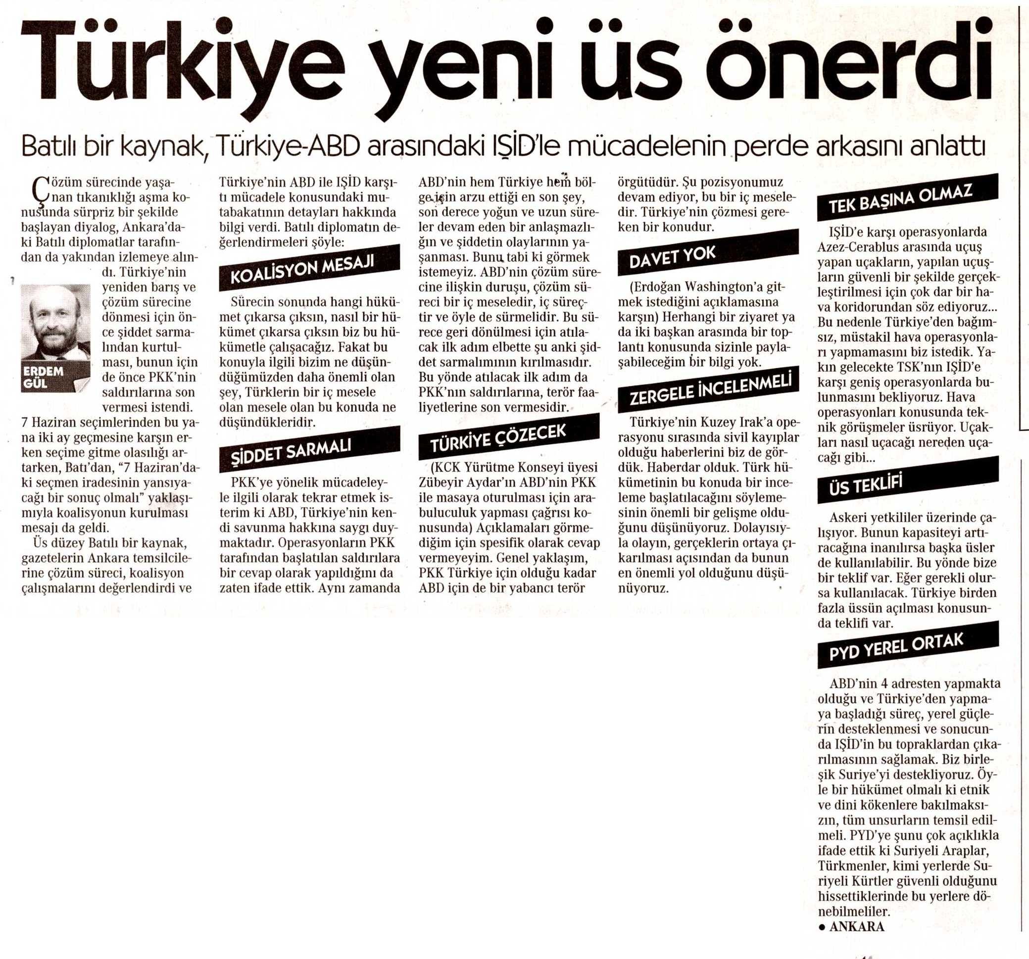 Ankara'da gazetecilerle görüşen ABD'li olduğu tahmin edilen bir diplomatın açıklamalarını tüm basın organları ''PYD müttefikimiz değil'' olarak verirken Cumhuriyet Gazetesi aynı haberi ''PYD yerel ortak'' olarak verdi. Böylece Cumhuriyet Gazetesi PYD aşkını bir kez daha göstermiş oldu.