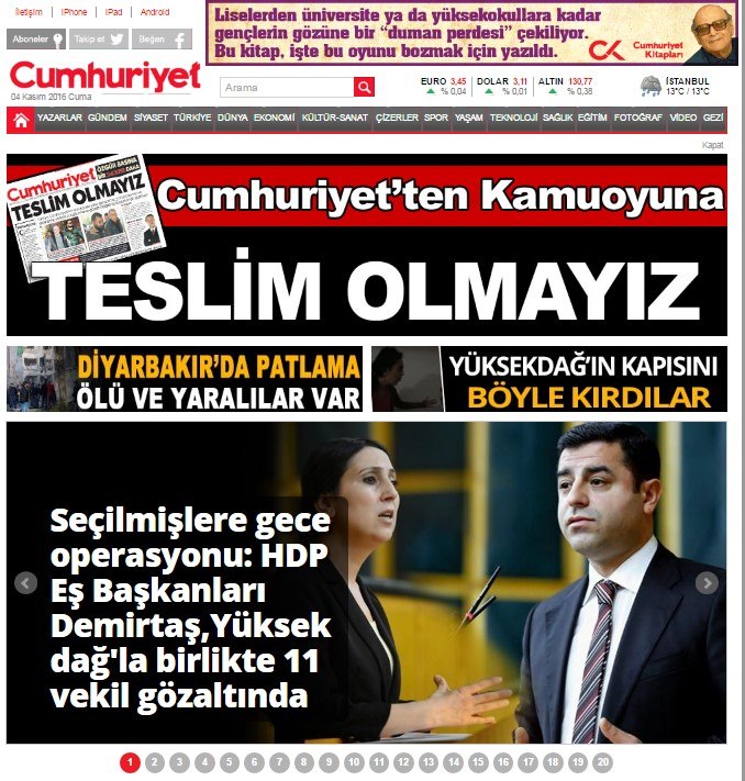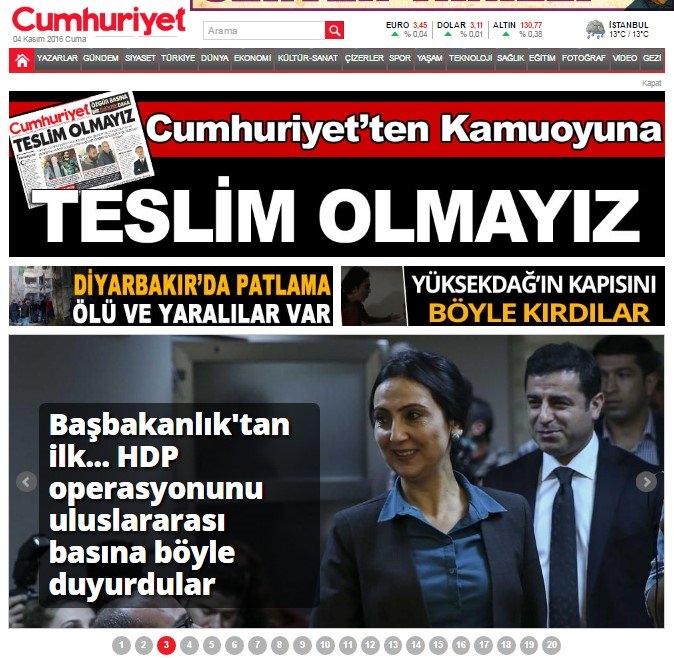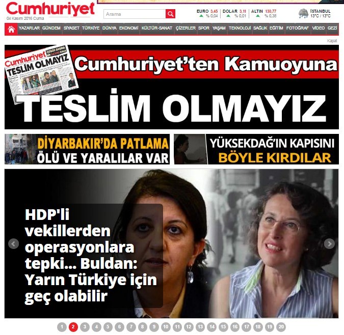 Operasyonun Cumhuriyette panik havası oluşturduğu manşetlere taşınan haberlerden ve atılan başlıklardan anlaşılıyor. Atılan başlıklara PKK/HDP/Cumhuriyet gazetesi birlikteliğini gözler önüne seriyor.