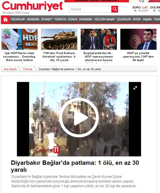 PKK ile birlikte hareket eden vekillere yönelik operasyondan hemen sonra Diyarbakır’da yaşanan hain saldırıyı, “Diyarbakır Bağlar’da patlama” şeklinde verilmesi Terör saldırısını gizlemektir. Atılan başlıkla hain saldırı basitleştirilmiş, terör örgütü aklanılmak istenmiştir. Milletin partisi olmak yerine teröristlerin partisi olanlara halk değil teröristler sahip çıkmıştır.