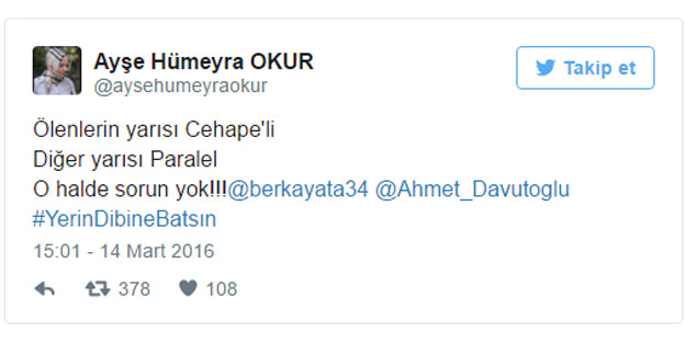 Ayşe Hümeyra Okur isimli Twitter kullanıcısının attığı yaptığı paylaşımı araştırmadan okurlarına duyuran gazete haber ve gazetecilik ilkelerini yine görmezden geldi. Ayşe Hümeyra Okur isimli hesabın profil fotoğrafı eşarp reklamlarında yer alan bir modele ait.