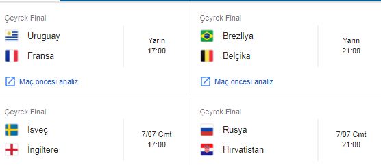 Dünya Kupası çeyrek finallerinin oynanacağı şu günlerde Dünya Kupası çeyrek final maçlarının hakemleri de belli oldu. Dünya Kupası çeyrek final maçları 6 Temmuz Cuma günü saat 17:00'de "Uruguay-Fransa" maçıyla start verecek. Uruguay Fransa maçını Arjantinli Nestor Pitana yönetecek. Rusya'da 3 maç yöneten Pitana, toplam 8 sarı kart çıkardı, 2 kere penaltı çaldı. Saat 21:00'de ise "Brezilya-Belçika" kapışması var. Karşılaşmayı Sırp hakem Milorad Mazic yönetecek. Gruplarda 2 maça çıktı, 6 sarı kart gösterdi, 1 defa penaltıya hükmetti. 7 Temmuz Cumartesi günü saat 17:00'de başlayacak olan "İsveç-İngiltere" maçına Hollandalı Björn Kuipers atandı. Penaltılara kadar giden ve İspanya'nın elendiği Rusya maçı da dahil toplam 3 maçta düdük çaldı. 8 sarı kart çıkartı, 1 kez beyaz noktayı gösterdi.