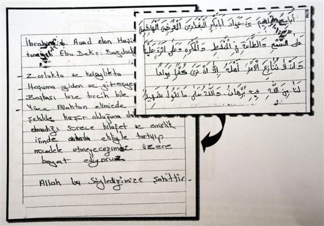 BAĞDADİ'YE TÜRKÇE BİAT METNİ BULUNDU