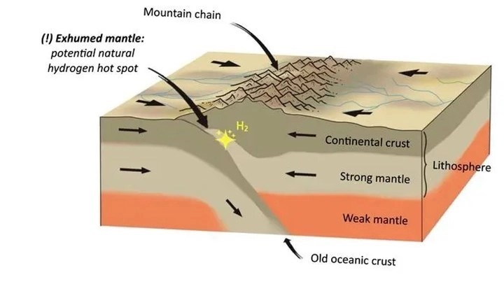Hidrojen, yer kabuğundaki manto kayalarıyla etkileşime girerek, suyla birleşip mineraller ve hidrojen gazı üreten serpantinleşme süreciyle büyük miktarlarda üretilebiliyor.