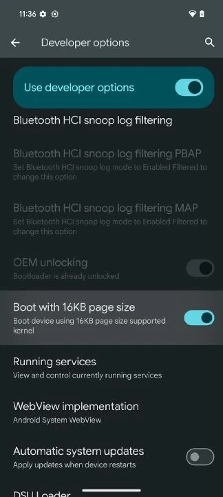 Bu yeniliği test etmek isteyen geliştiriciler, Android 15 QPR1 Beta 1 ile Pixel 8 ve 8 Pro cihazlarında "16 KB sayfa boyutu ile önyükleme" seçeneğini kullanabilecek.