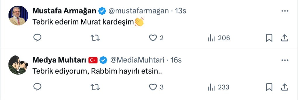 * Medya Muhtarı: “Tebrik ediyorum, Rabbim hayırlı etsin.”