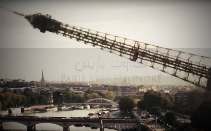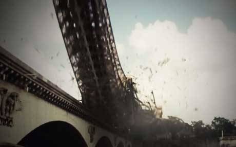 Videoda montaj yöntemiyle Fransa’nın simgesi Eyfel Kulesi’nin yıkıldığı görülüyor.